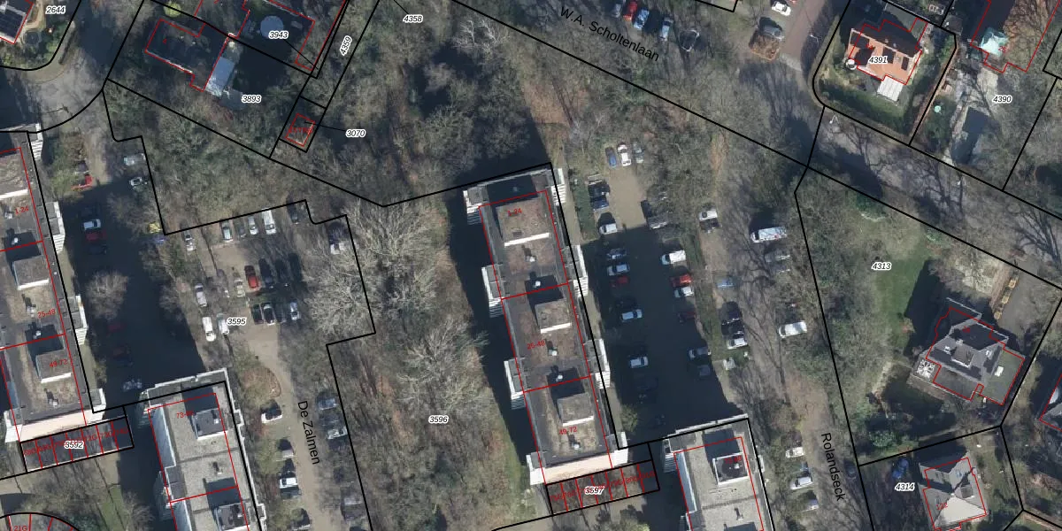 Het perceel waarop Rolandseck 13 staat heeft een oppervlakte van 3650 m². Dit is een zeer groot perceel. De perceeloppervlakte wordt geregistreerd door het Kadaster. Gedetailleerde informatie over de maten van dit perceel kunt u vinden in het rapport Kadastrale kaart met maatvoering van Rolandseck 13.