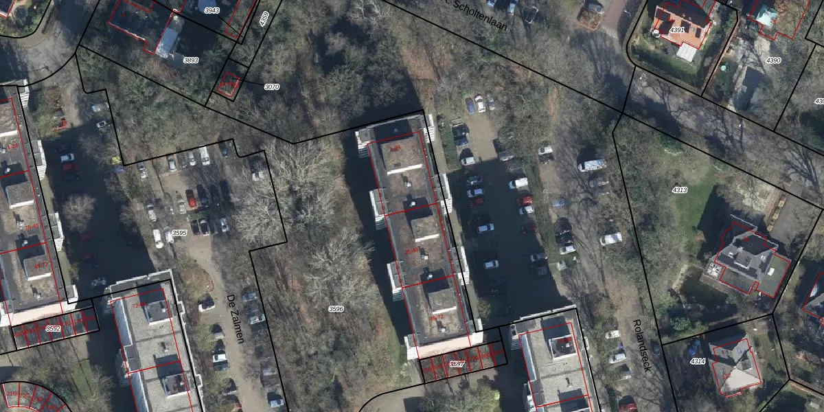 Het perceel waarop Rolandseck 19 staat heeft een oppervlakte van 3650 m². Dit is een zeer groot perceel. De perceeloppervlakte wordt geregistreerd door het Kadaster. Gedetailleerde informatie over de maten van dit perceel kunt u vinden in het rapport Kadastrale kaart met maatvoering van Rolandseck 19.