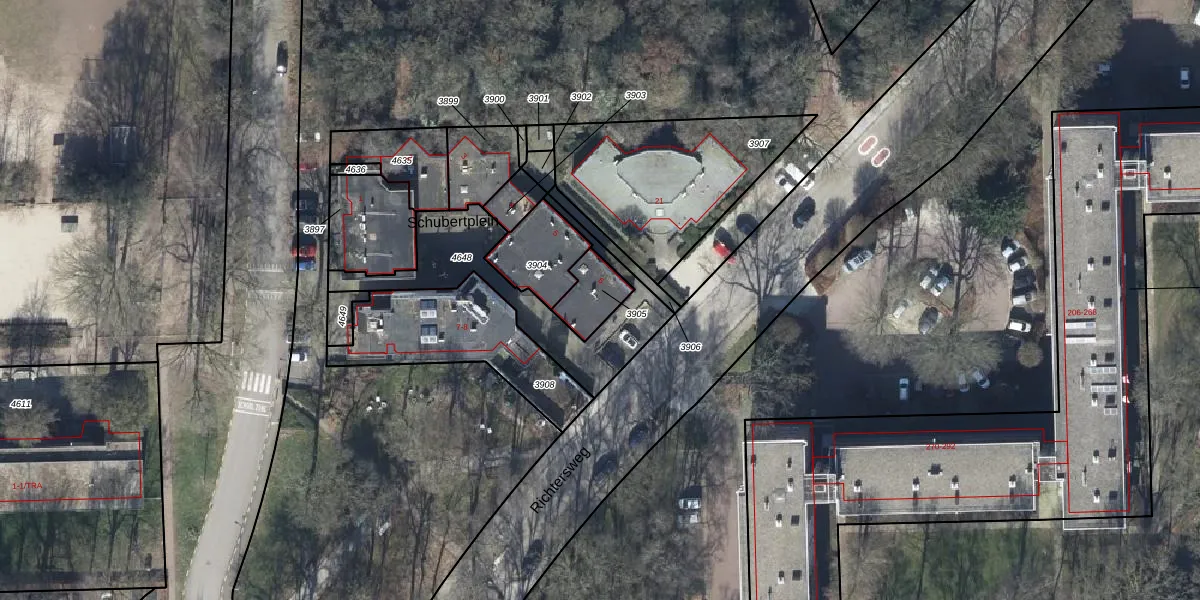 Gebruik de zoekbalk of klik op een perceel voor informatie over de adressen binnen dit perceel.