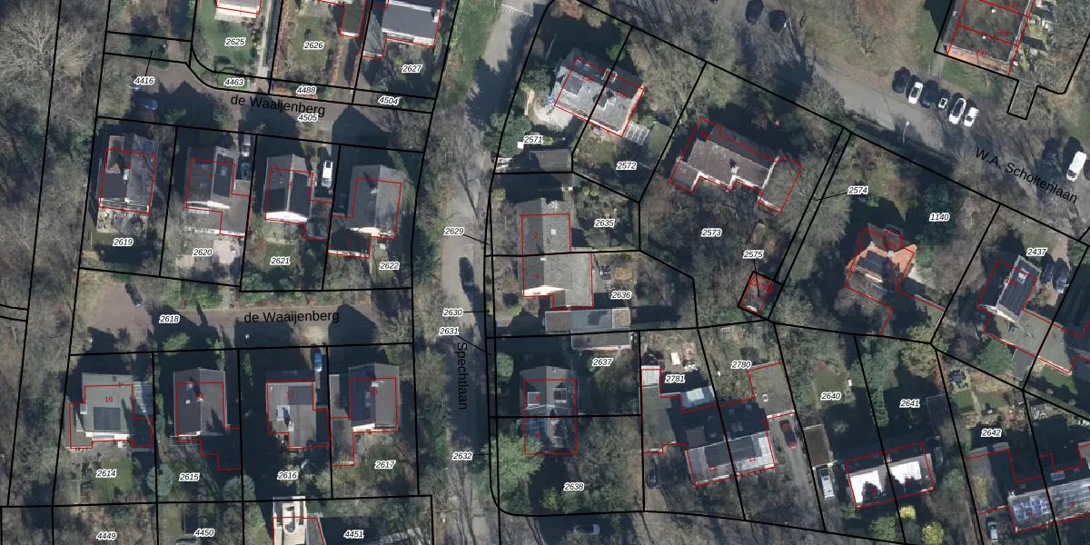 Gebruik de zoekbalk of klik op een perceel voor informatie over de adressen binnen dit perceel.