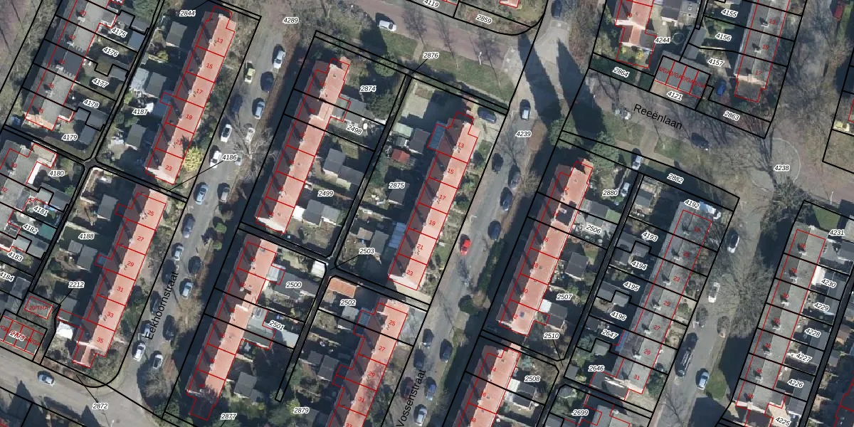 Vossenstraat 19 is gelegen op kadastraal perceel DWH00C2875. Deze kadastrale aanduiding is uniek en wordt gebruikt door het Kadaster om eigendomsrechten en andere zakelijke rechten vast te leggen. Het perceel maakt onderdeel uit van de kadastrale gemeente Doorwerth.