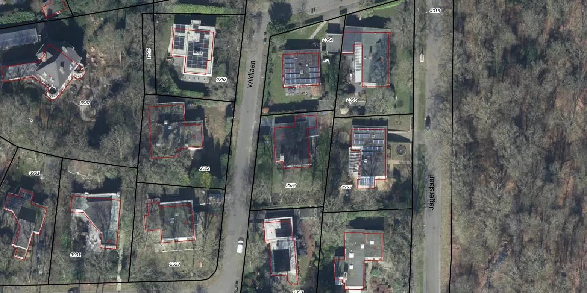Gebruik de zoekbalk of klik op een perceel voor informatie over de adressen binnen dit perceel.