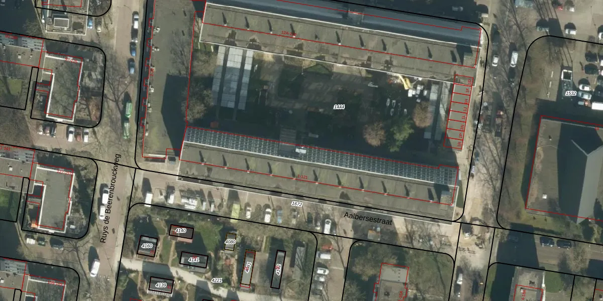 Het perceel waarop Aalbersestraat 1-J staat heeft een oppervlakte van 7395 m². Dit is een zeer groot perceel. De perceeloppervlakte wordt geregistreerd door het Kadaster. Gedetailleerde informatie over de maten van dit perceel kunt u vinden in het rapport Kadastrale kaart met maatvoering van Aalbersestraat 1-J.