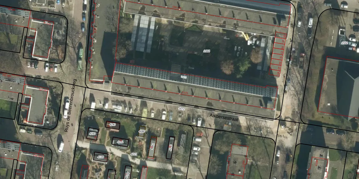Het perceel waarop Aalbersestraat 87 staat heeft een oppervlakte van 7395 m². Dit is een zeer groot perceel. De perceeloppervlakte wordt geregistreerd door het Kadaster. Gedetailleerde informatie over de maten van dit perceel kunt u vinden in het rapport Kadastrale kaart met maatvoering van Aalbersestraat 87.