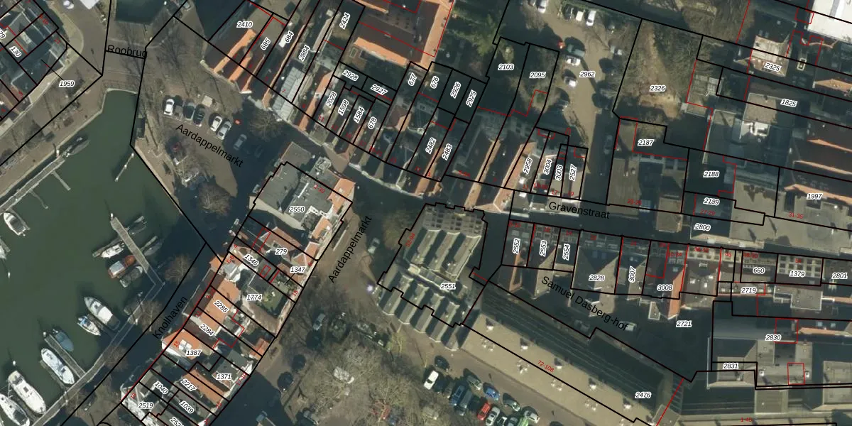 Aardappelmarkt 32 is gelegen op kadastraal perceel DDT00F2551. Deze kadastrale aanduiding is uniek en wordt gebruikt door het Kadaster om eigendomsrechten en andere zakelijke rechten vast te leggen. Het perceel maakt onderdeel uit van de kadastrale gemeente Dordrecht.