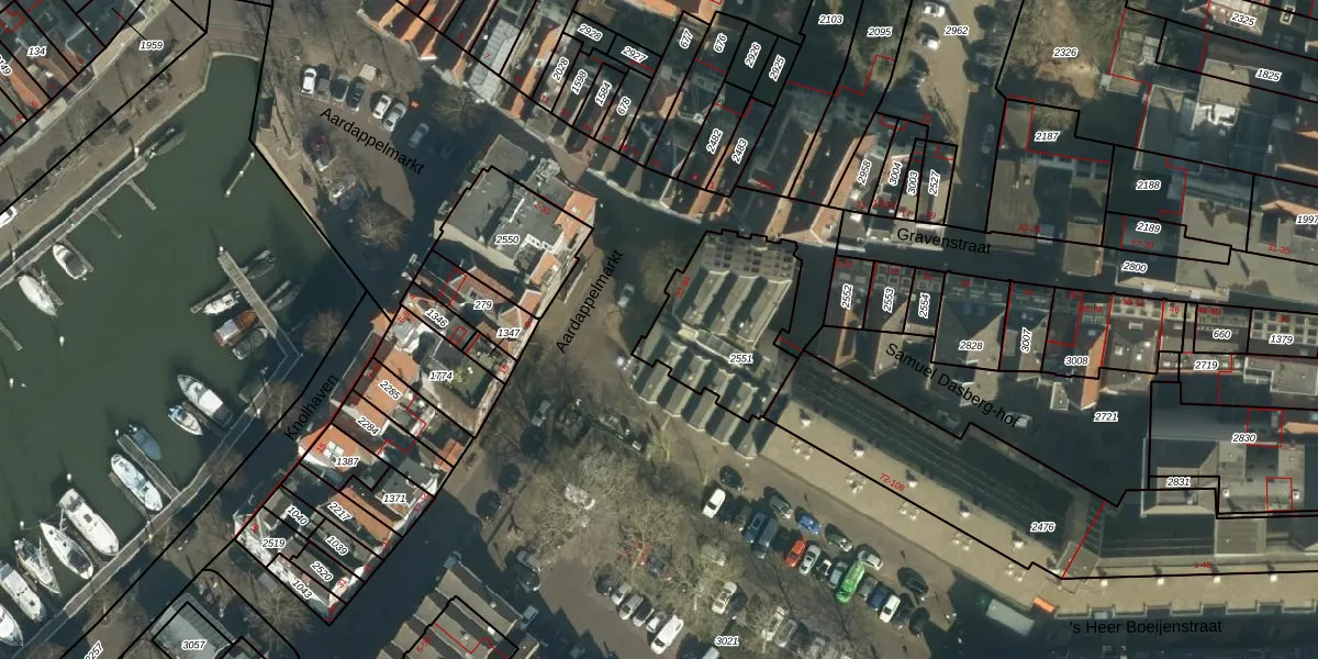 Aardappelmarkt 42 is gelegen op kadastraal perceel DDT00F2551. Deze kadastrale aanduiding is uniek en wordt gebruikt door het Kadaster om eigendomsrechten en andere zakelijke rechten vast te leggen. Het perceel maakt onderdeel uit van de kadastrale gemeente Dordrecht.