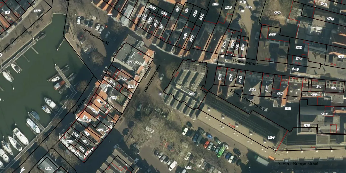 Het perceel waarop Aardappelmarkt 54 staat heeft een oppervlakte van 490 m². Dit is een groot perceel. De perceeloppervlakte wordt geregistreerd door het Kadaster. Gedetailleerde informatie over de maten van dit perceel kunt u vinden in het rapport Kadastrale kaart met maatvoering van Aardappelmarkt 54.