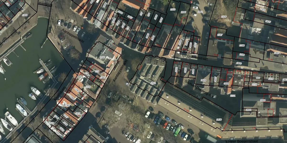 Aardappelmarkt 62 is gelegen op kadastraal perceel DDT00F2551. Deze kadastrale aanduiding is uniek en wordt gebruikt door het Kadaster om eigendomsrechten en andere zakelijke rechten vast te leggen. Het perceel maakt onderdeel uit van de kadastrale gemeente Dordrecht.