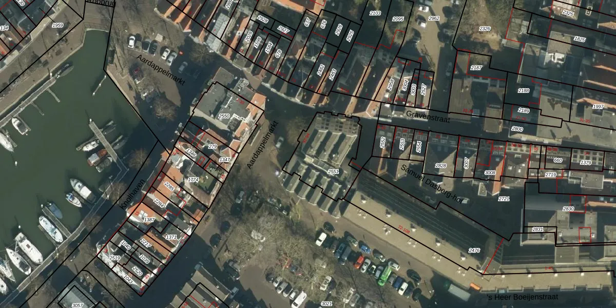 Het perceel waarop Aardappelmarkt 64 staat heeft een oppervlakte van 490 m². Dit is een groot perceel. De perceeloppervlakte wordt geregistreerd door het Kadaster. Gedetailleerde informatie over de maten van dit perceel kunt u vinden in het rapport Kadastrale kaart met maatvoering van Aardappelmarkt 64.