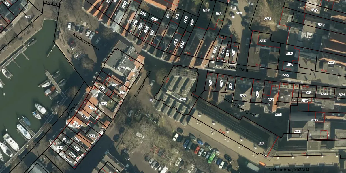 Aardappelmarkt 74 is gelegen op kadastraal perceel DDT00F2551. Deze kadastrale aanduiding is uniek en wordt gebruikt door het Kadaster om eigendomsrechten en andere zakelijke rechten vast te leggen. Het perceel maakt onderdeel uit van de kadastrale gemeente Dordrecht.