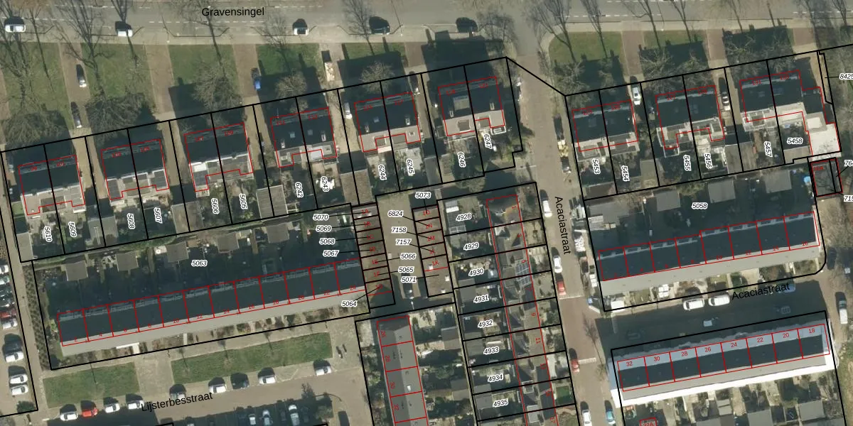 Acaciastraat 1-O is gelegen op kadastraal perceel DBD00A5073. Deze kadastrale aanduiding is uniek en wordt gebruikt door het Kadaster om eigendomsrechten en andere zakelijke rechten vast te leggen. Het perceel maakt onderdeel uit van de kadastrale gemeente Dubbeldam.