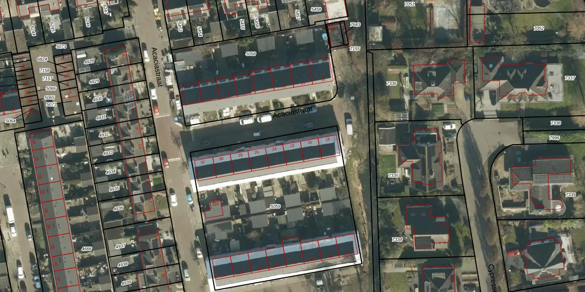 Het perceel waarop Acaciastraat 22 staat heeft een oppervlakte van 2440 m². Dit is een zeer groot perceel. De perceeloppervlakte wordt geregistreerd door het Kadaster. Gedetailleerde informatie over de maten van dit perceel kunt u vinden in het rapport Kadastrale kaart met maatvoering van Acaciastraat 22.