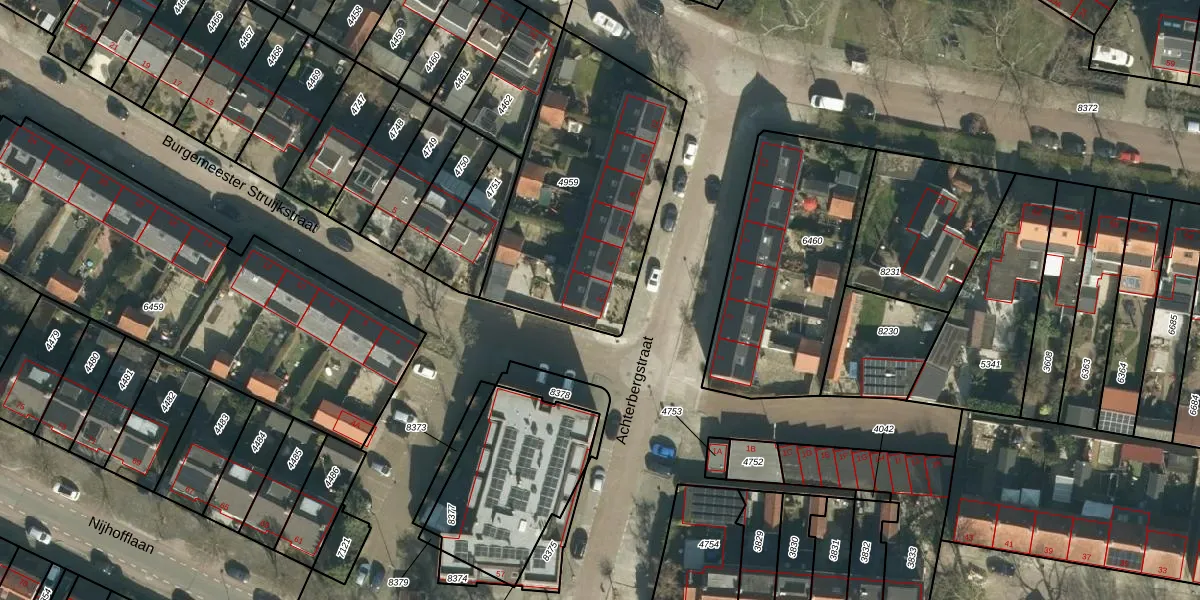 Het perceel waarop Achterbergstraat 2 staat heeft een oppervlakte van 1045 m². Dit is een zeer groot perceel. De perceeloppervlakte wordt geregistreerd door het Kadaster. Gedetailleerde informatie over de maten van dit perceel kunt u vinden in het rapport Kadastrale kaart met maatvoering van Achterbergstraat 2.