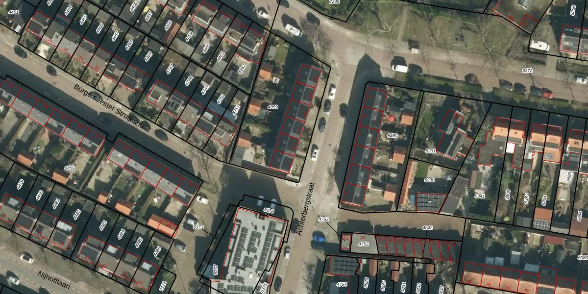 Het perceel waarop Achterbergstraat 4 staat heeft een oppervlakte van 1045 m². Dit is een zeer groot perceel. De perceeloppervlakte wordt geregistreerd door het Kadaster. Gedetailleerde informatie over de maten van dit perceel kunt u vinden in het rapport Kadastrale kaart met maatvoering van Achterbergstraat 4.