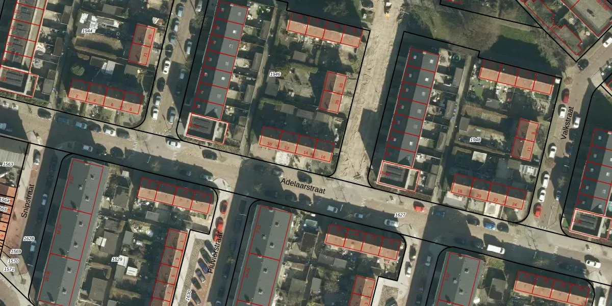 Het perceel waarop Adelaarstraat 14 staat heeft een oppervlakte van 2720 m². Dit is een zeer groot perceel. De perceeloppervlakte wordt geregistreerd door het Kadaster. Gedetailleerde informatie over de maten van dit perceel kunt u vinden in het rapport Kadastrale kaart met maatvoering van Adelaarstraat 14.