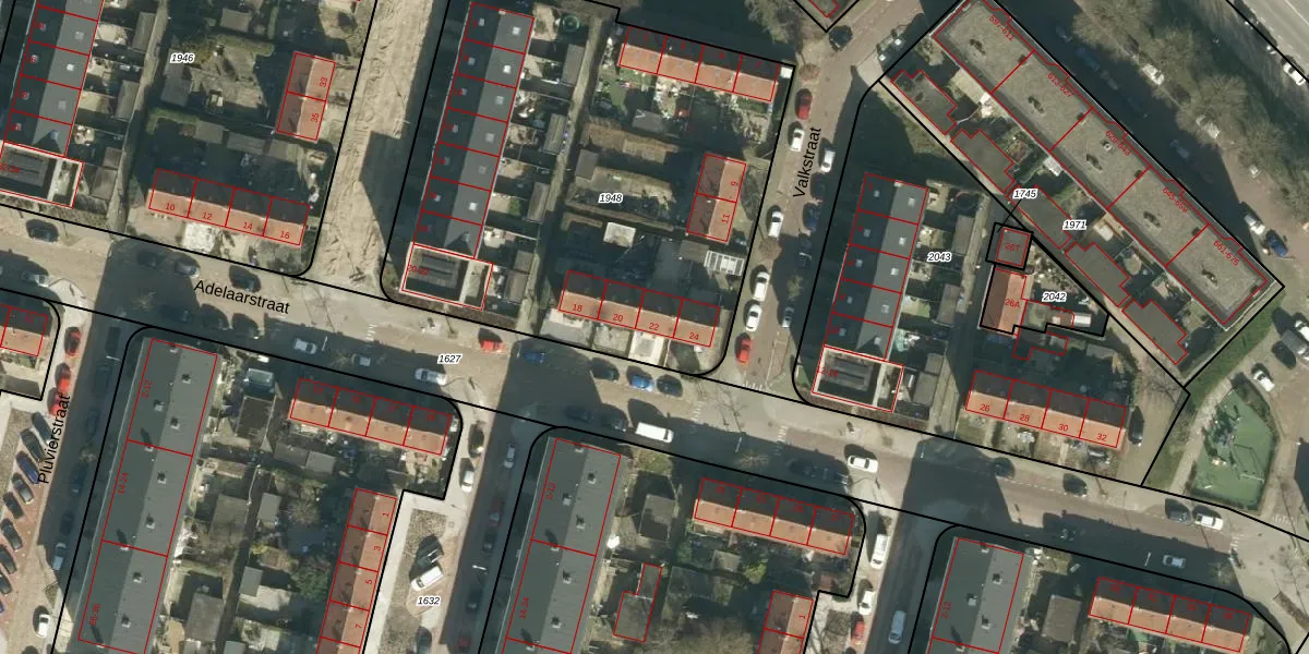 Het perceel waarop Adelaarstraat 22 staat heeft een oppervlakte van 2725 m². Dit is een zeer groot perceel. De perceeloppervlakte wordt geregistreerd door het Kadaster. Gedetailleerde informatie over de maten van dit perceel kunt u vinden in het rapport Kadastrale kaart met maatvoering van Adelaarstraat 22.