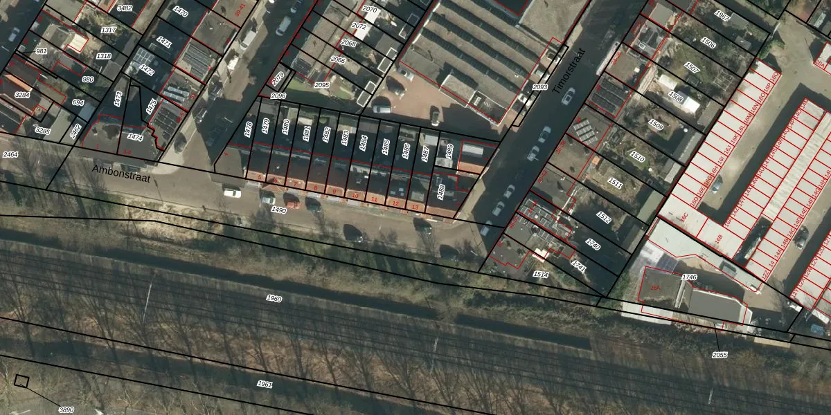 Het perceel waarop Ambonstraat 13 staat heeft een oppervlakte van 99 m². Dit is een klein perceel. De perceeloppervlakte wordt geregistreerd door het Kadaster. Gedetailleerde informatie over de maten van dit perceel kunt u vinden in het rapport Kadastrale kaart met maatvoering van Ambonstraat 13.