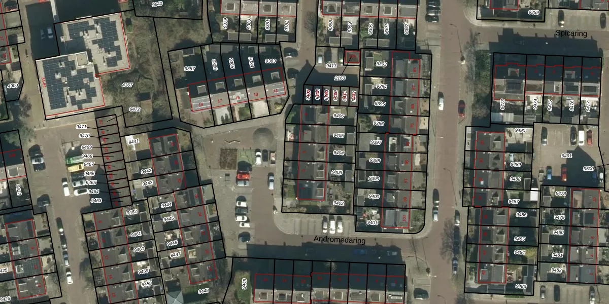 Andromedaring 5 is gelegen op kadastraal perceel DDT00Q9404. Deze kadastrale aanduiding is uniek en wordt gebruikt door het Kadaster om eigendomsrechten en andere zakelijke rechten vast te leggen. Het perceel maakt onderdeel uit van de kadastrale gemeente Dordrecht.