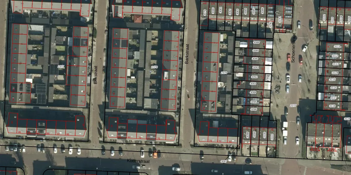 Het perceel waarop Barkstraat 13 staat heeft een oppervlakte van 3733 m². Dit is een zeer groot perceel. De perceeloppervlakte wordt geregistreerd door het Kadaster. Gedetailleerde informatie over de maten van dit perceel kunt u vinden in het rapport Kadastrale kaart met maatvoering van Barkstraat 13.