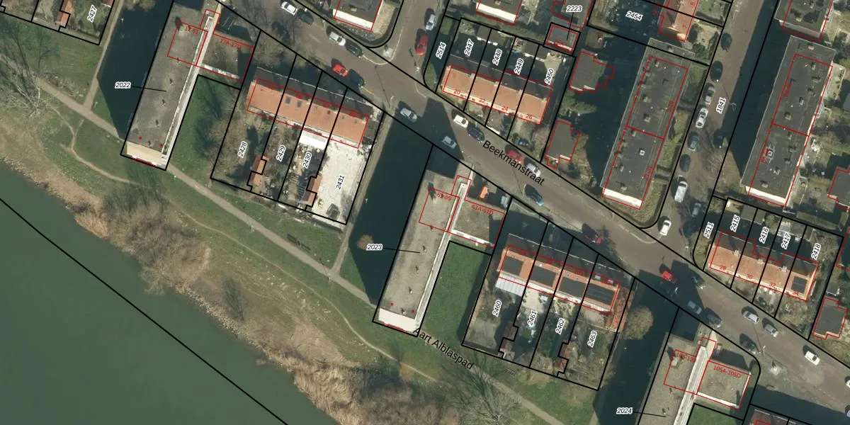 Beekmanstraat 63 is gelegen op kadastraal perceel DDT00I2023. Deze kadastrale aanduiding is uniek en wordt gebruikt door het Kadaster om eigendomsrechten en andere zakelijke rechten vast te leggen. Het perceel maakt onderdeel uit van de kadastrale gemeente Dordrecht.
