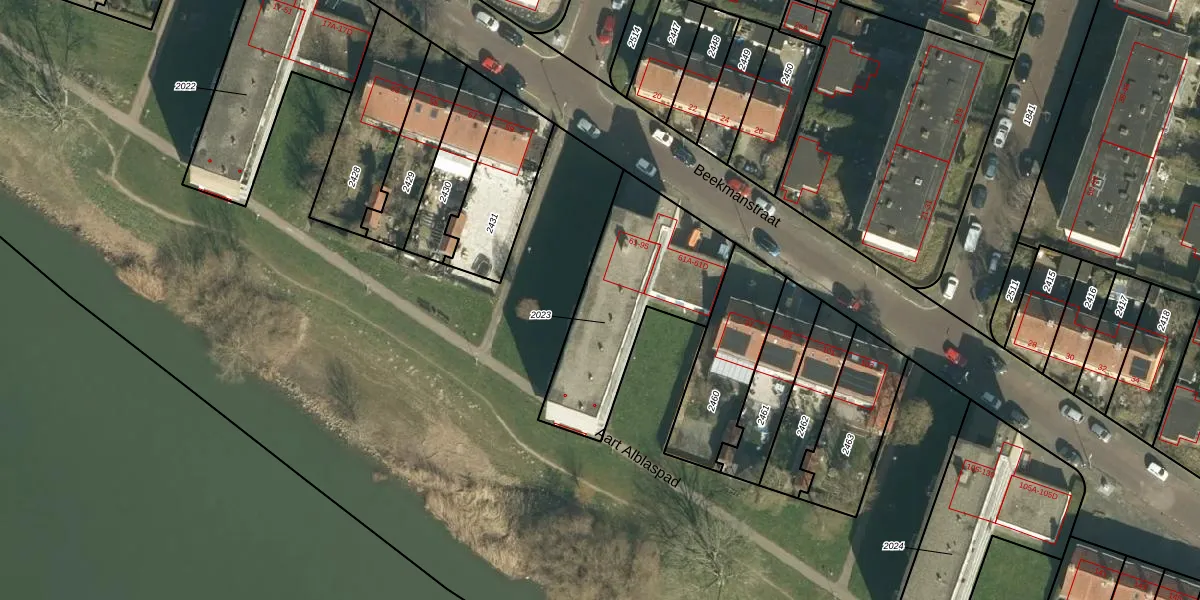 Het adres ligt op het perceel DDT00-I-2023, dat zich in de kadastrale gemeente Dordrecht bevindt. Het perceel is kleiner dan gemiddeld in Dordrecht. Het perceel is 640 m² groot, terwijl het gemiddelde ligt op 2475,62 m². De grootste perceeloppervlakte in de kadastrale gemeente is 3,41 km². De kleinste oppervlakte bedraagt 0 m². Op het perceel zijn 22 adressen aanwezig. In de Basisregistratie Kadaster (BRK) werden de grenzen van het perceel geregistreerd op 29-04-2009.