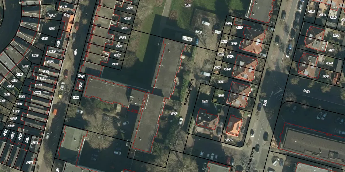 Het perceel waarop Bellevuestraat 13 staat heeft een oppervlakte van 4120 m². Dit is een zeer groot perceel. De perceeloppervlakte wordt geregistreerd door het Kadaster. Gedetailleerde informatie over de maten van dit perceel kunt u vinden in het rapport Kadastrale kaart met maatvoering van Bellevuestraat 13.