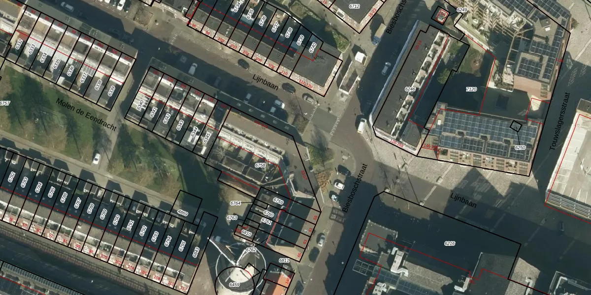 Het perceel waarop Biesboschstraat 43 staat heeft een oppervlakte van 728 m². Dit is een groot perceel. De perceeloppervlakte wordt geregistreerd door het Kadaster. Gedetailleerde informatie over de maten van dit perceel kunt u vinden in het rapport Kadastrale kaart met maatvoering van Biesboschstraat 43.