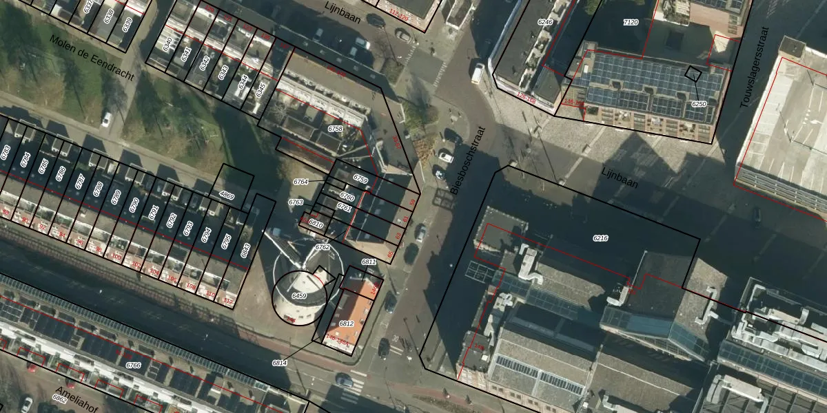 Gebruik de zoekbalk of klik op een perceel voor informatie over de adressen binnen dit perceel.