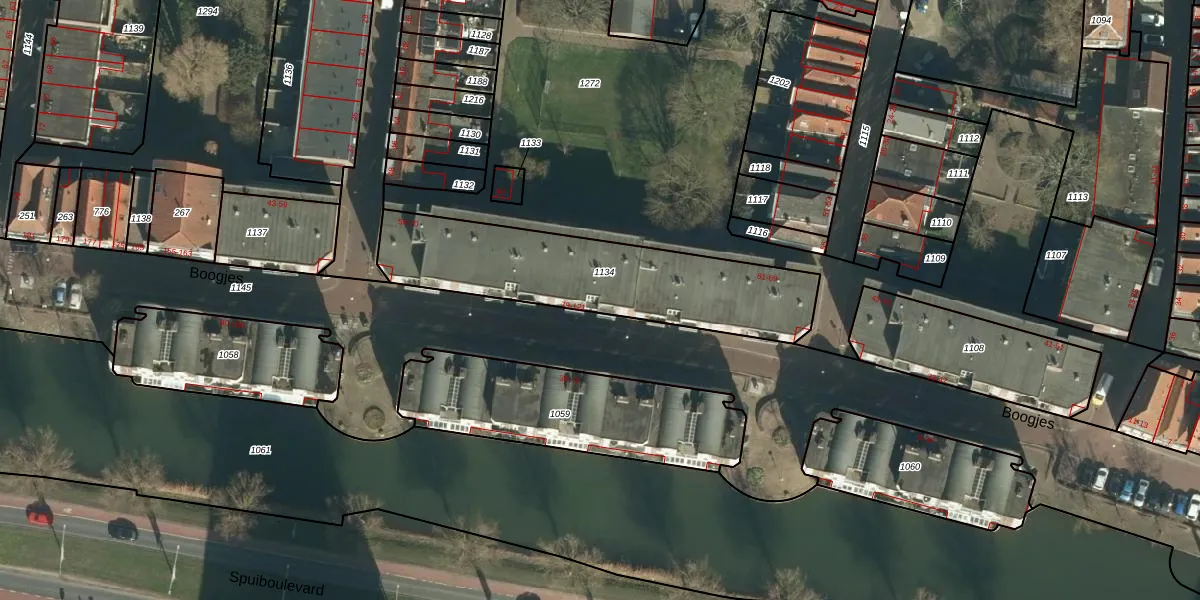 Het perceel waarop Boogjes 101 staat heeft een oppervlakte van 875 m². Dit is een groot perceel. De perceeloppervlakte wordt geregistreerd door het Kadaster. Gedetailleerde informatie over de maten van dit perceel kunt u vinden in het rapport Kadastrale kaart met maatvoering van Boogjes 101.