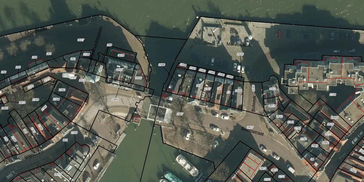 Het adres ligt op het perceel DDT00-G-2587, dat zich in de kadastrale gemeente Dordrecht bevindt. Het perceel is kleiner dan gemiddeld in Dordrecht. Het perceel is 89 m² groot, terwijl het gemiddelde ligt op 2475,62 m². De grootste perceeloppervlakte in de kadastrale gemeente is 3,41 km². De kleinste oppervlakte bedraagt 0 m². Er zijn 3 adressen aanwezig op het perceel. In de Basisregistratie Kadaster (BRK) werden de grenzen van het perceel geregistreerd op 15-01-2008.