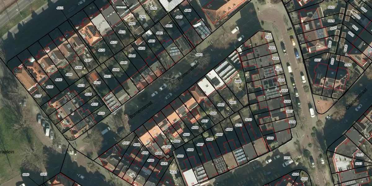 Borneostraat 14 is gelegen op kadastraal perceel DDT00C4657. Deze kadastrale aanduiding is uniek en wordt gebruikt door het Kadaster om eigendomsrechten en andere zakelijke rechten vast te leggen. Het perceel maakt onderdeel uit van de kadastrale gemeente Dordrecht.