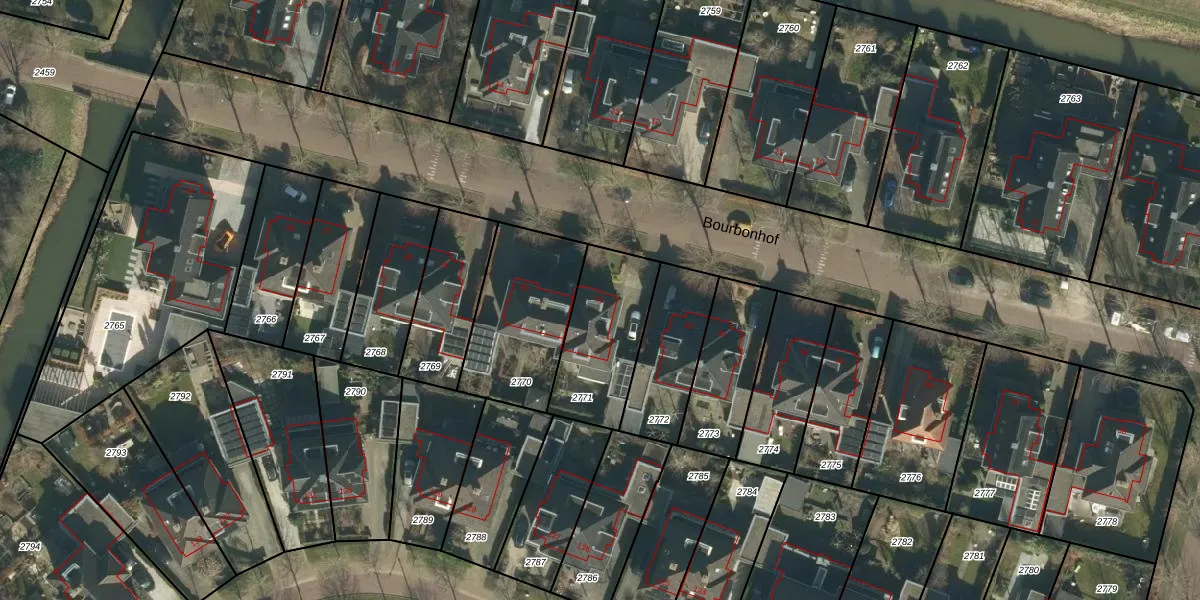 Het perceel waarop Bourbonhof 31 staat heeft een oppervlakte van 362 m². Dit is een groot perceel. De perceeloppervlakte wordt geregistreerd door het Kadaster. Gedetailleerde informatie over de maten van dit perceel kunt u vinden in het rapport Kadastrale kaart met maatvoering van Bourbonhof 31.