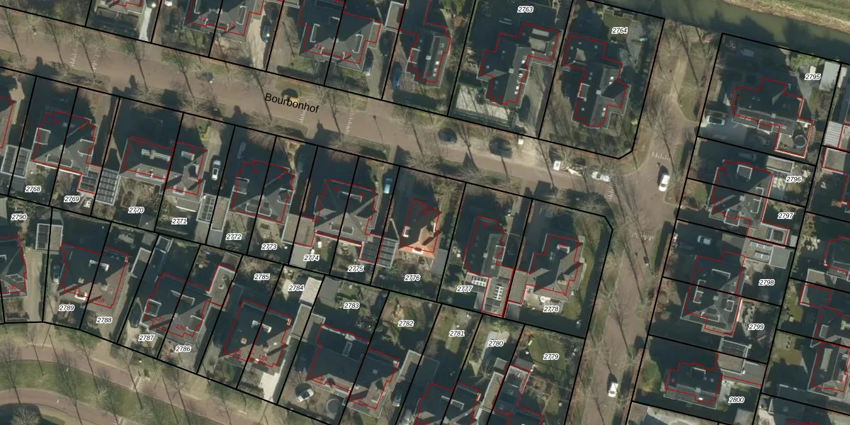 Het perceel waarop Bourbonhof 36 staat heeft een oppervlakte van 466 m². Dit is een groot perceel. De perceeloppervlakte wordt geregistreerd door het Kadaster. Gedetailleerde informatie over de maten van dit perceel kunt u vinden in het rapport Kadastrale kaart met maatvoering van Bourbonhof 36.