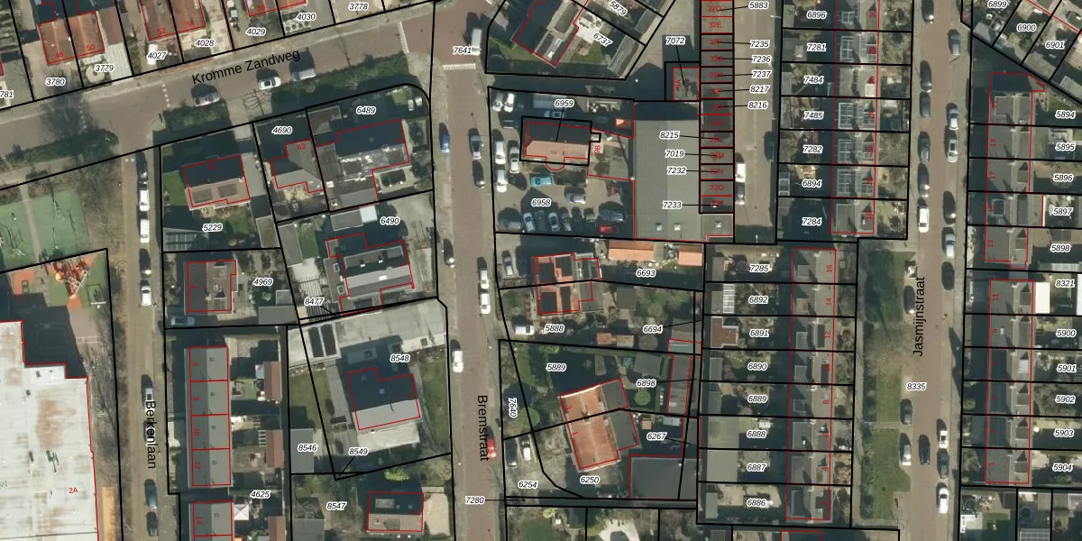 Gebruik de zoekbalk of klik op een perceel voor informatie over de adressen binnen dit perceel.