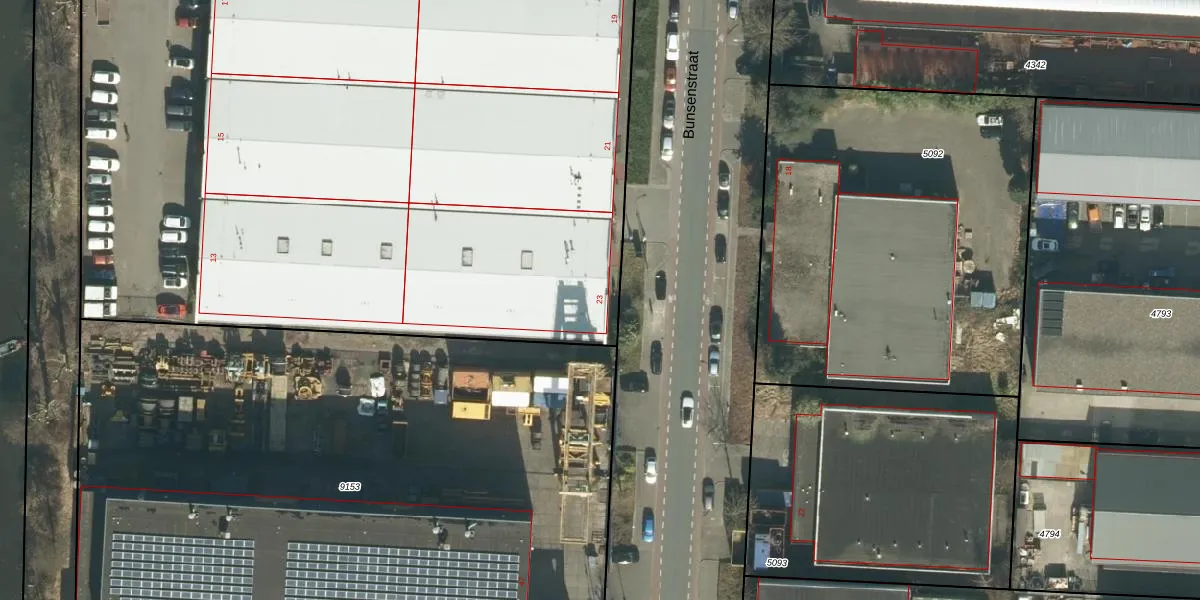 Het perceel waarop Bunsenstraat 23 staat heeft een oppervlakte van 1,3 ha. Dit is een zeer groot perceel. De perceeloppervlakte wordt geregistreerd door het Kadaster. Gedetailleerde informatie over de maten van dit perceel kunt u vinden in het rapport Kadastrale kaart met maatvoering van Bunsenstraat 23.