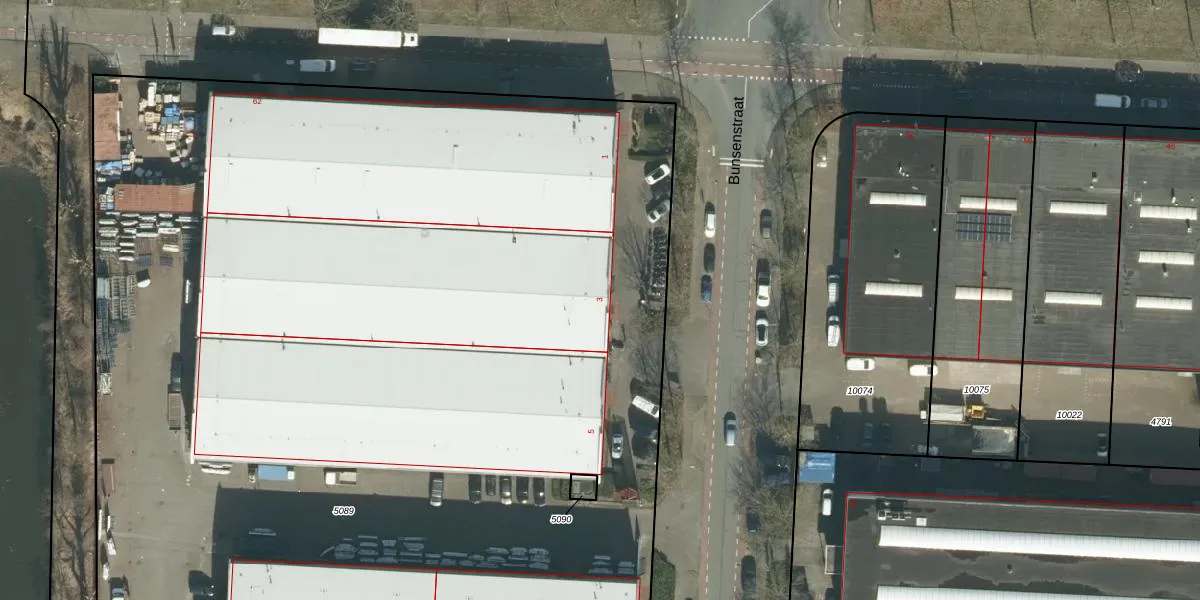 Het perceel waarop Bunsenstraat 3 staat heeft een oppervlakte van 1,3 ha. Dit is een zeer groot perceel. De perceeloppervlakte wordt geregistreerd door het Kadaster. Gedetailleerde informatie over de maten van dit perceel kunt u vinden in het rapport Kadastrale kaart met maatvoering van Bunsenstraat 3.