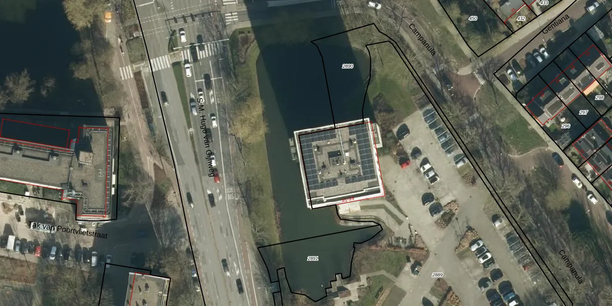 Het perceel waarop Campanula 3-8 staat heeft een oppervlakte van 1,2 ha. Dit is een zeer groot perceel. De perceeloppervlakte wordt geregistreerd door het Kadaster. Gedetailleerde informatie over de maten van dit perceel kunt u vinden in het rapport Kadastrale kaart met maatvoering van Campanula 3-8.