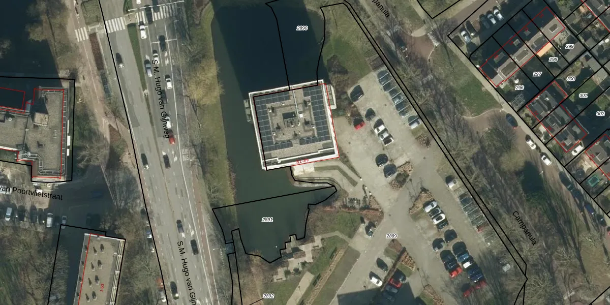 Het perceel waarop Campanula 3-42 staat heeft een oppervlakte van 1,2 ha. Dit is een zeer groot perceel. De perceeloppervlakte wordt geregistreerd door het Kadaster. Gedetailleerde informatie over de maten van dit perceel kunt u vinden in het rapport Kadastrale kaart met maatvoering van Campanula 3-42.