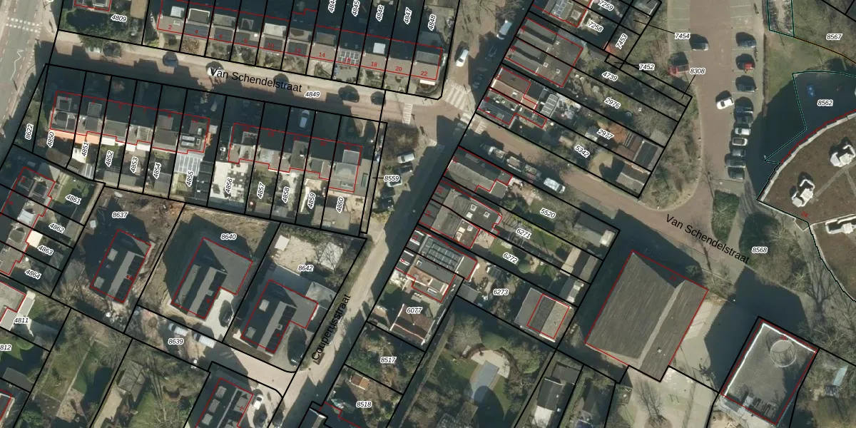Gebruik de zoekbalk of klik op een perceel voor informatie over de adressen binnen dit perceel.