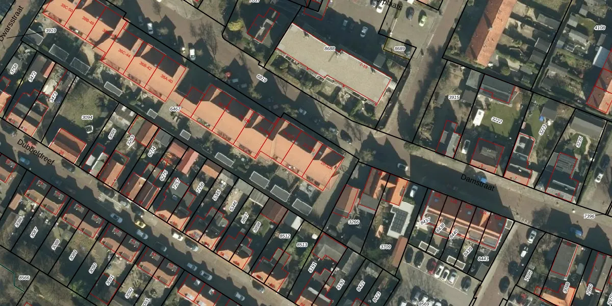Damstraat 32-B is gelegen op kadastraal perceel DBD00A6467. Deze kadastrale aanduiding is uniek en wordt gebruikt door het Kadaster om eigendomsrechten en andere zakelijke rechten vast te leggen. Het perceel maakt onderdeel uit van de kadastrale gemeente Dubbeldam.