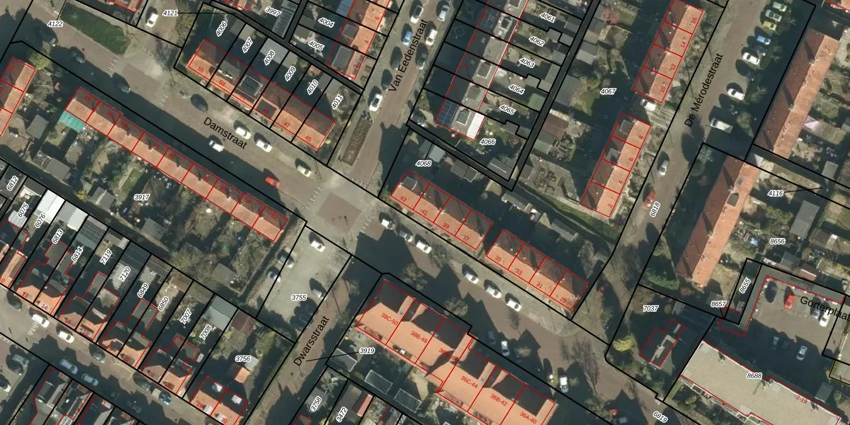 Damstraat 41 is gelegen op kadastraal perceel DBD00A4067. Deze kadastrale aanduiding is uniek en wordt gebruikt door het Kadaster om eigendomsrechten en andere zakelijke rechten vast te leggen. Het perceel maakt onderdeel uit van de kadastrale gemeente Dubbeldam.