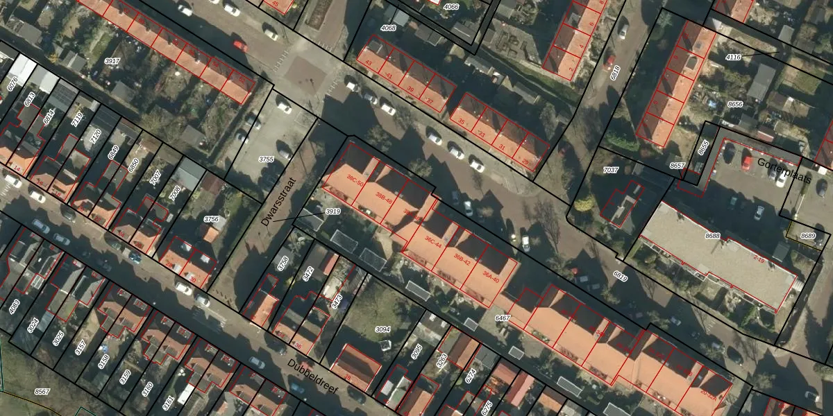 Het perceel waarop Damstraat 46 staat heeft een oppervlakte van 2867 m². Dit is een zeer groot perceel. De perceeloppervlakte wordt geregistreerd door het Kadaster. Gedetailleerde informatie over de maten van dit perceel kunt u vinden in het rapport Kadastrale kaart met maatvoering van Damstraat 46.