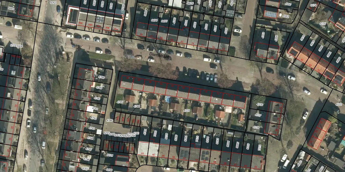 Damstraat 82 is gelegen op kadastraal perceel DBD00A4779. Deze kadastrale aanduiding is uniek en wordt gebruikt door het Kadaster om eigendomsrechten en andere zakelijke rechten vast te leggen. Het perceel maakt onderdeel uit van de kadastrale gemeente Dubbeldam.