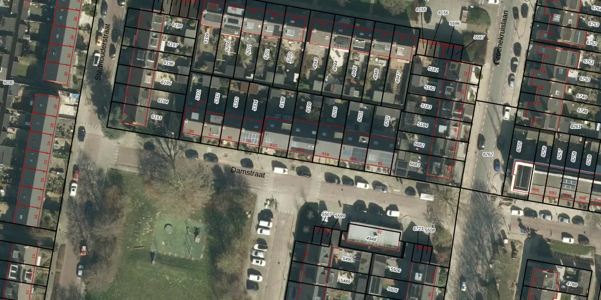 Damstraat 91-C is gelegen op kadastraal perceel DBD00A8199. Deze kadastrale aanduiding is uniek en wordt gebruikt door het Kadaster om eigendomsrechten en andere zakelijke rechten vast te leggen. Het perceel maakt onderdeel uit van de kadastrale gemeente Dubbeldam.