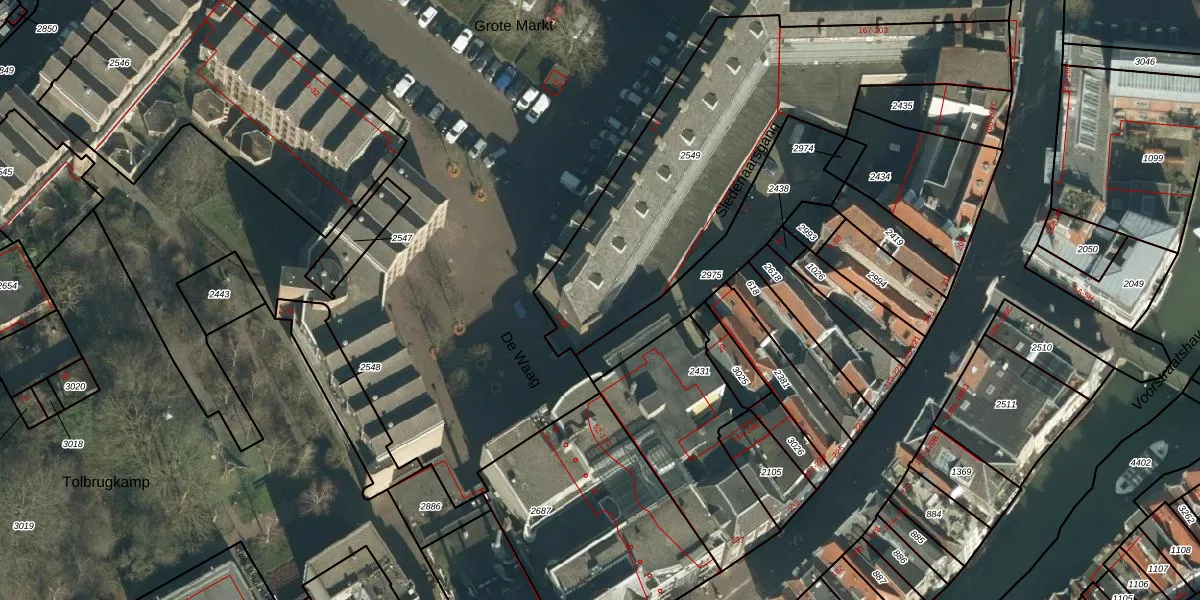 Het perceel waarop De Waag 46 staat heeft een oppervlakte van 1607 m². Dit is een zeer groot perceel. De perceeloppervlakte wordt geregistreerd door het Kadaster. Gedetailleerde informatie over de maten van dit perceel kunt u vinden in het rapport Kadastrale kaart met maatvoering van De Waag 46.
