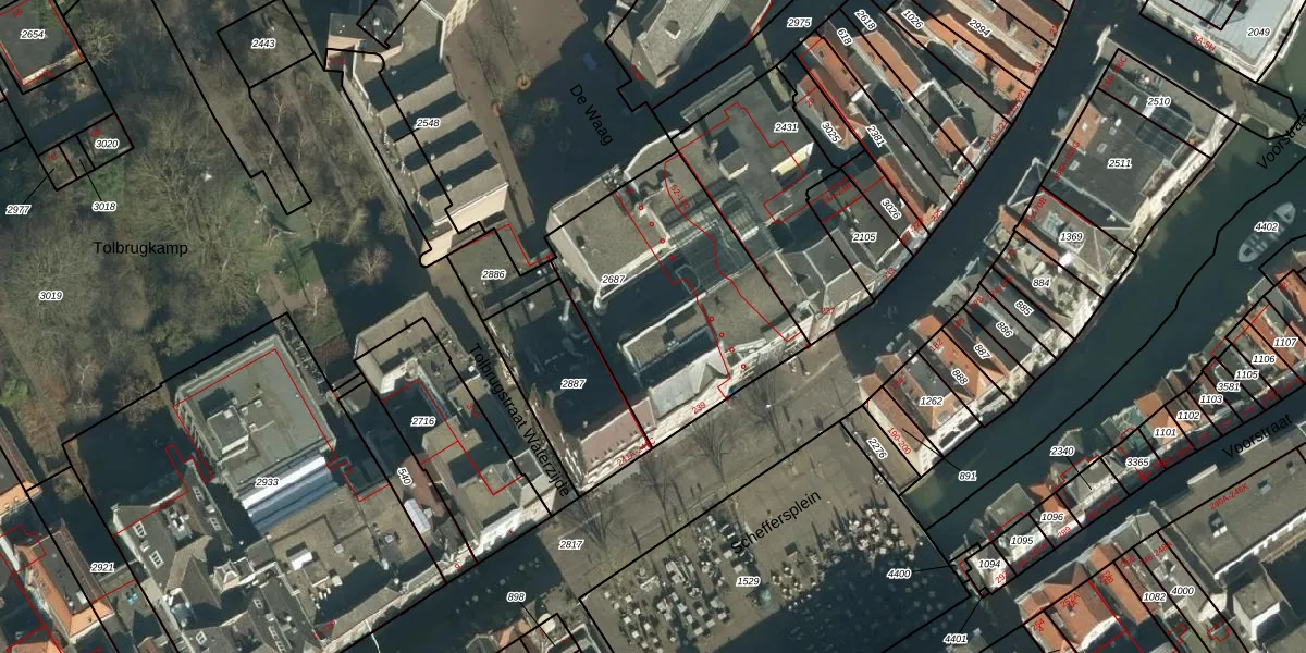 Het perceel waarop De Waag 82 staat heeft een oppervlakte van 995 m². Dit is een groot perceel. De perceeloppervlakte wordt geregistreerd door het Kadaster. Gedetailleerde informatie over de maten van dit perceel kunt u vinden in het rapport Kadastrale kaart met maatvoering van De Waag 82.