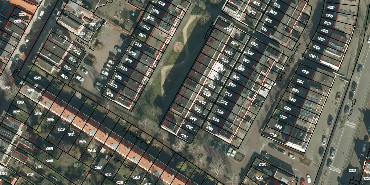 Het perceel waarop Dijkstraat 40 staat heeft een oppervlakte van 103 m². Dit is een middelgroot perceel. De perceeloppervlakte wordt geregistreerd door het Kadaster. Gedetailleerde informatie over de maten van dit perceel kunt u vinden in het rapport Kadastrale kaart met maatvoering van Dijkstraat 40.