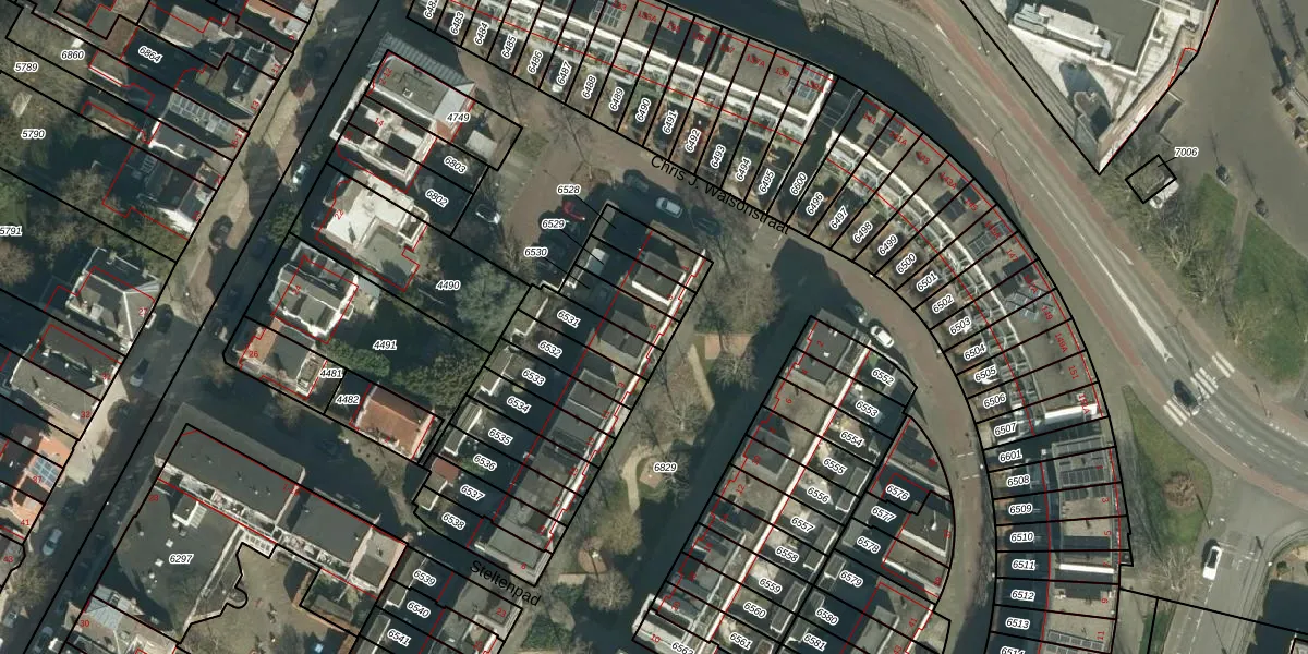 Gebruik de zoekbalk of klik op een perceel voor informatie over de adressen binnen dit perceel.