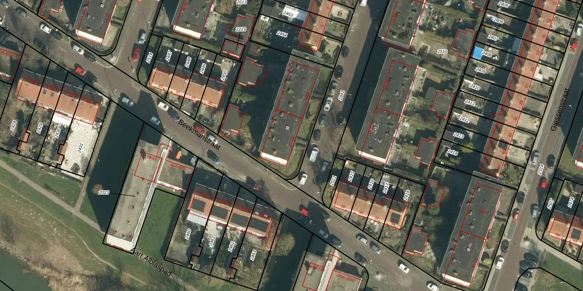 Het perceel waarop het adres ligt is DDT00-I-2513. De afkorting 'DDT00' staat voor kadastrale gemeente Dordrecht. De oppervlakte van het perceel is 2940 m². Dat is groter dan gemiddeld in Dordrecht, waar de gemiddelde perceeloppervlakte op 2475,62 m² ligt. Het grootste perceel in de kadastrale gemeente is 3,41 km². Het kleinste perceel heeft een oppervlakte van 0 m². Er zijn 30 adressen aanwezig op het perceel. In de Basisregistratie Kadaster (BRK) werden de grenzen van het perceel geregistreerd op 31-07-2009.