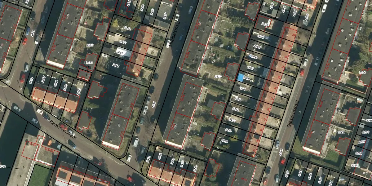 Dubbelstraat 40 is gelegen op kadastraal perceel DDT00I2510. Deze kadastrale aanduiding is uniek en wordt gebruikt door het Kadaster om eigendomsrechten en andere zakelijke rechten vast te leggen. Het perceel maakt onderdeel uit van de kadastrale gemeente Dordrecht.